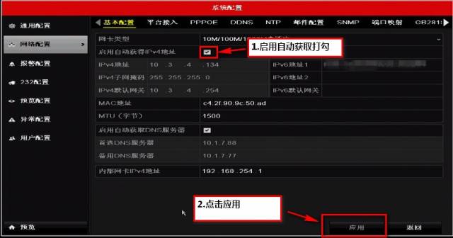 進(jìn)入主菜單-系統(tǒng)配置-網(wǎng)絡(luò)配置-基本配置,自動獲取IPV4地址,具體操作可參考下圖: