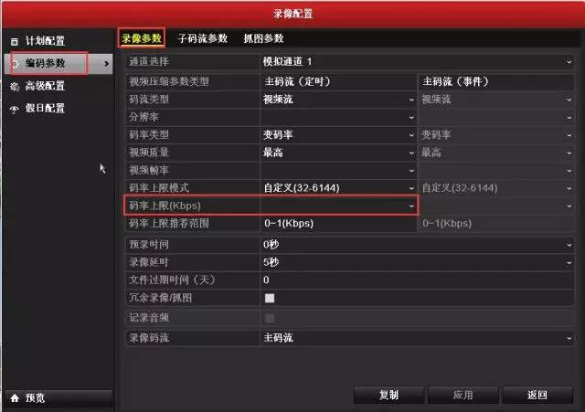 1)這邊的碼率上限指的是設備的主碼流碼率上限,因為錄像一般是按照主碼流來進行錄像的;